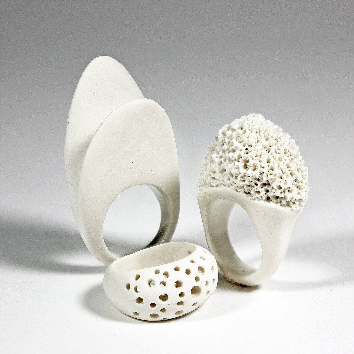 • Réalisation de bagues et d’anneaux en porcelaine blanche afin d’apprendre à maîtriser la taille en fonction du retrait à la cuisson et éviter les déformations.