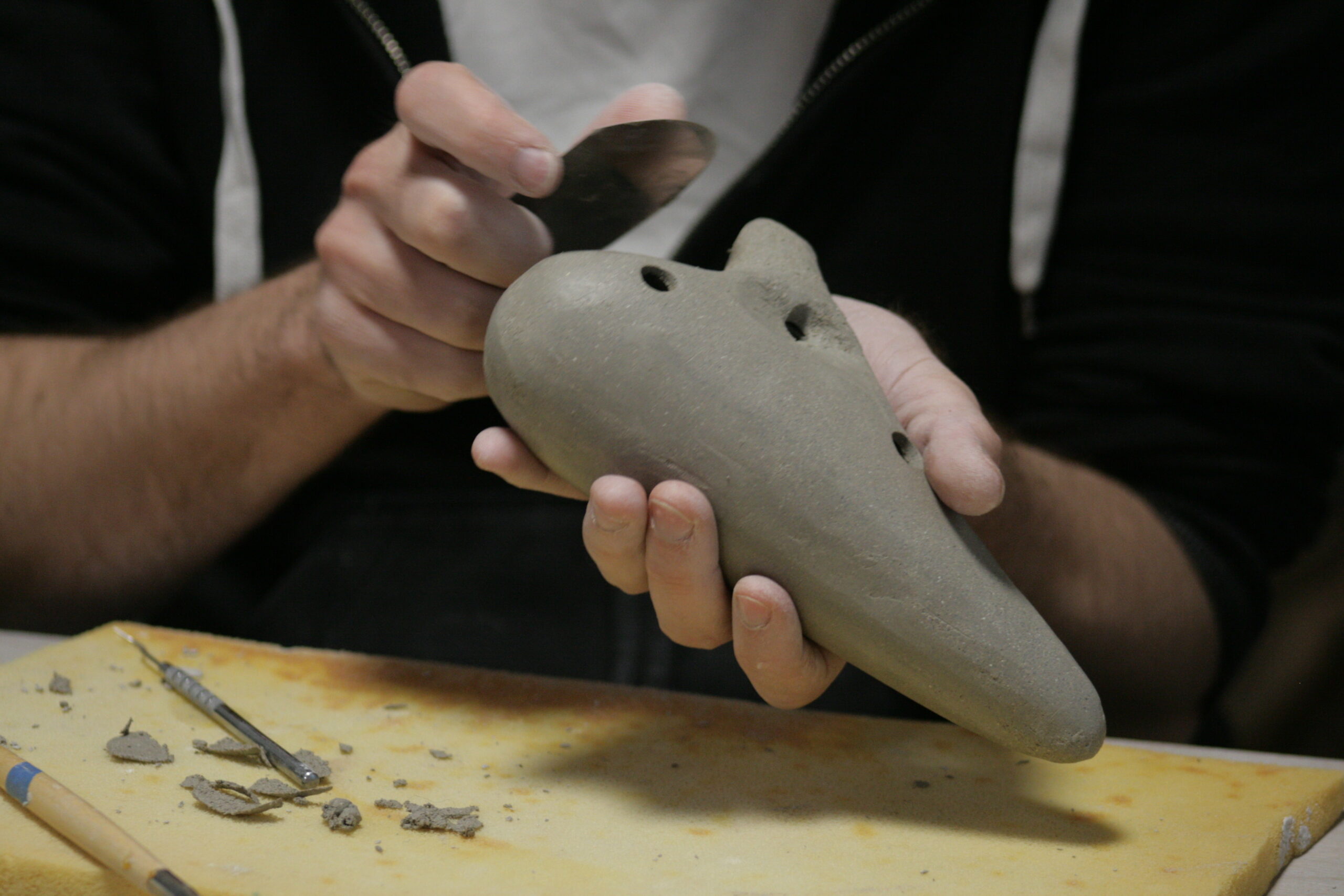 • 11h : chaque participant façonne puis évide son ocarina, en optant pour une forme classique, figurative ou plus libre.
